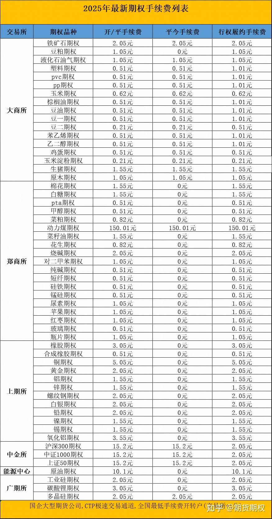 期权手续费一览表(2025年5月更新)