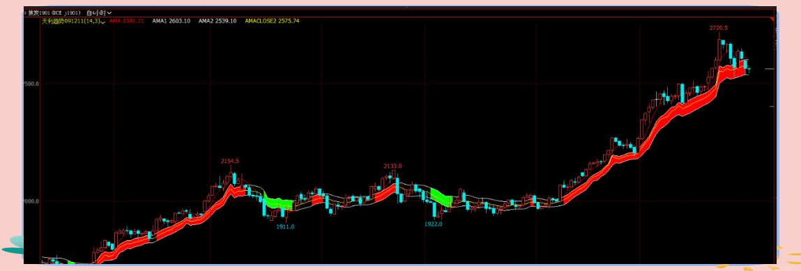 2007年,我接触到了一个名为“智能均线”的指标,其独特之处在于能够根据市场趋势自动调整参数。在市场方向明确,例如出现失控行情时,它会选择如5日、10日这样的短期均线,以快速响应市场变化。而当行情进入震荡整理阶段时,均线则会选择较大的参数,如30日、40日,以更好地适应市场的波动。这种智能调节的均线策略,简单来说,就是在普通的均线基础上加入了一个动态调节因子。