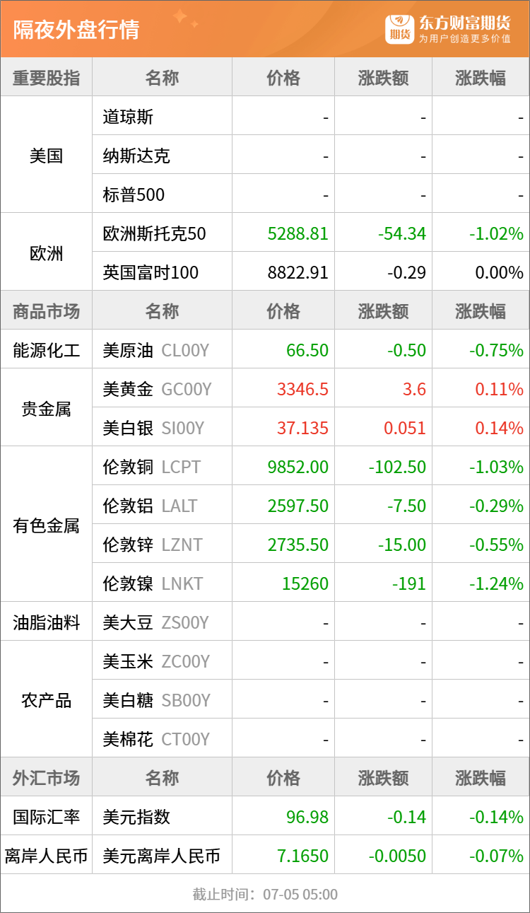 原油:当地时间7月5日,石油输出国组织(欧佩克)发表声明称,欧佩克和非欧佩克产油国中的8个主要产油国决定8月日均增产54.8万桶。沙特阿拉伯、俄罗斯、伊拉克、阿联酋、科威特、哈萨克斯坦、阿尔及利亚和阿曼的代表当天举行线上会议,讨论国际石油市场形势及前景。声明说,鉴于当前市场基本面稳健,石油库存处于低位,8国决定调整产量。同时,8国将根据市场情况灵活调整增产节奏,以维护石油市场稳定。上述国家7月日均增产41.1万桶。