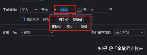 对手价,最新价,排队价,市价,超价,还有隐藏的指定价模式(指定价模式:直接输入这个价格,非这个不成交)