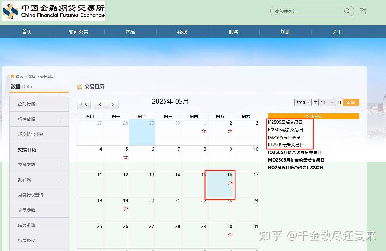 当然投资者不会计算或者不方便计算的话可以直接到中国金融期货交易所官网找到数据菜单栏,然后在里面有一个交易日历,点开就可以看到。