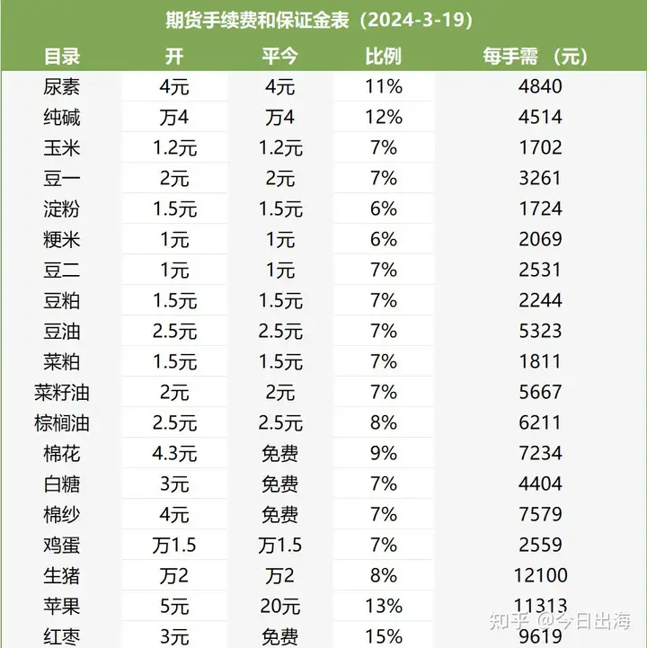期货手续费一般是交易所手续费基础上加1分,比如玉米1.21元,棕榈油2.51元,苹果5.01元,橡胶3.01元,原油20.01元,豆粕1.51元,棕榈油2.51元,螺纹钢万1,热卷万1等等。