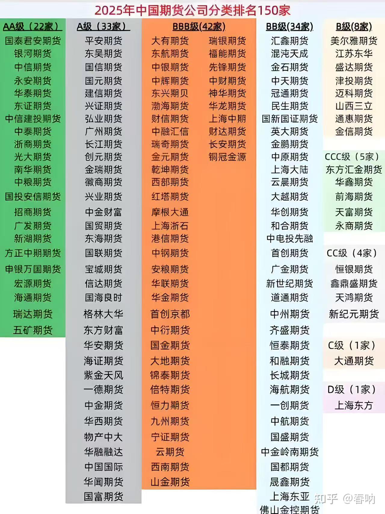中国期货业协会(中期协)和证监会对国内150家期货公司的最新评级结果已公布,综合资本实力、风险管理、技术系统及合规状况等多维度指标,将期货公司分为 AA级(最高)至D级(最低)共9个等级。以下为分类排名核心信息汇总: