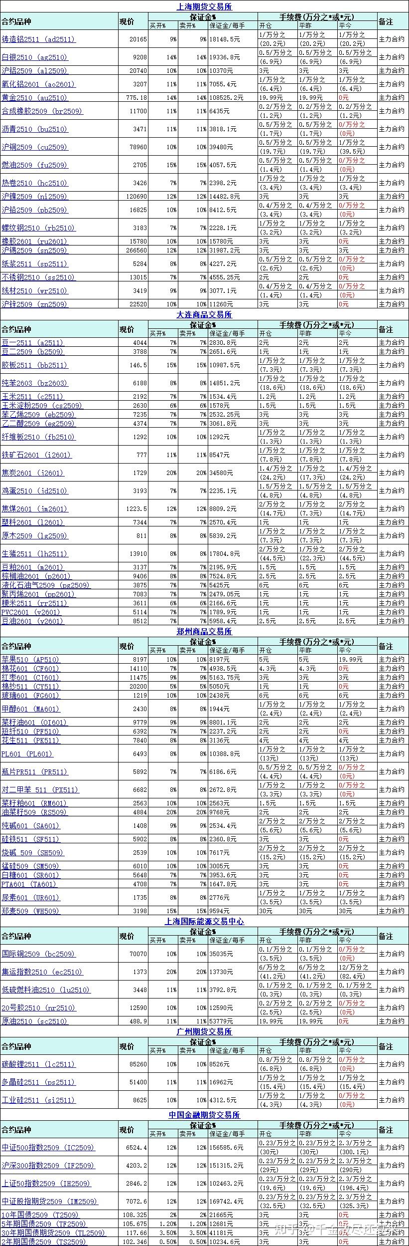 希望可以帮到您,下图是2025年8月18日最新交易所期货手续费保证金一览表,请参考一下,比这个标准贵一点是可以接受的,贵太多倍,还是趁早换比较好!