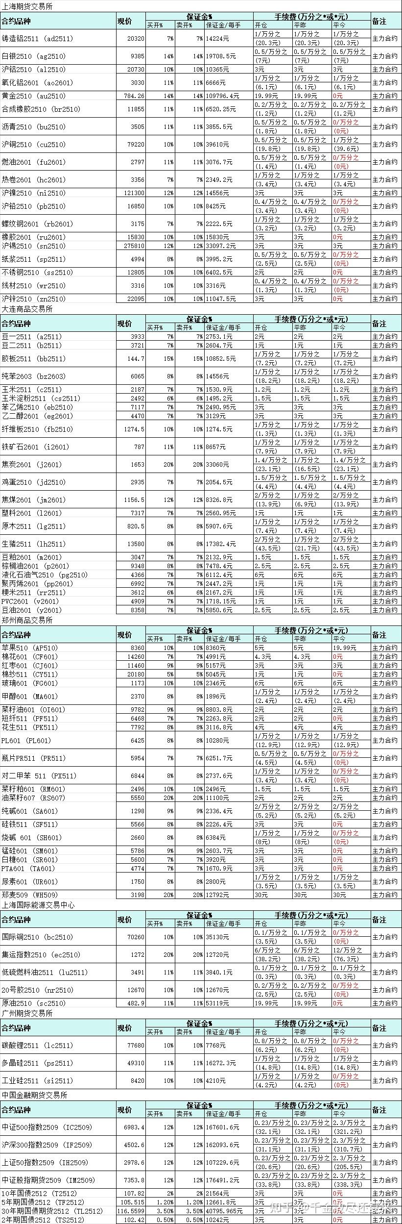 所有期货和期权详见下图: